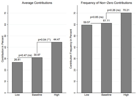 | 11. | Overall, these baseline results fall into a range comparable to that observed in Diederich and Goeschl [42] and Löschel et al. [29], who looked at contributions to the same public good. As these studies vary the price of giving, there is only limited comparability to our setting. Carpenter et al. [43] used a similar elicitation method, but allowed participants to give to a charity of their own choosing. In their setting, donations reach 68 percent of the initial endowment. |