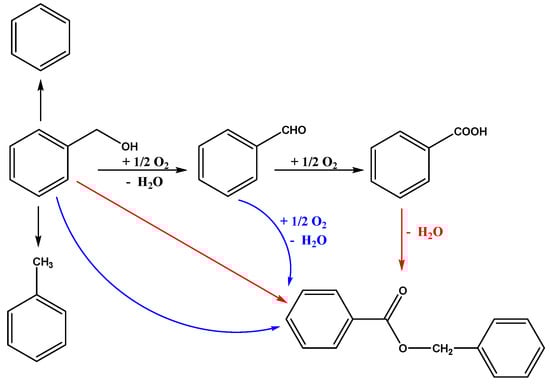 - Long, N.Q.; Quan, N.A. Highly Selective Oxidation of Benzyl Alcohol to Benzaldehyde Catalyzed by Nano Au/γ-Al2O3 under Environment-Friendly Conditions. React. Kinet. Mech. Catal. 2014, 114, 147–155. [Google Scholar] [CrossRef]
