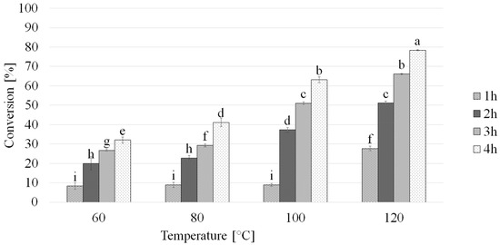 | T [h] | T [°C] | Conversion a (%) | Selectivity b (%) | ||