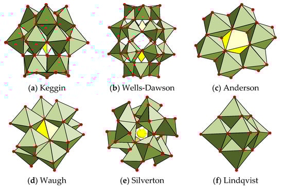 Polyoxometalates (POM) structures in polyhedral representations. Adapted from Ref. [], Copyright 2013, Elsevier.