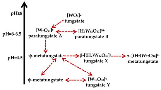 - Simon Ng, K.Y.; Gulari, E. Spectroscopic and scattering investigation of isopoly-molybdate and tungstate solutions. Polyhedron 1984, 3, 1001–1011. [Google Scholar]