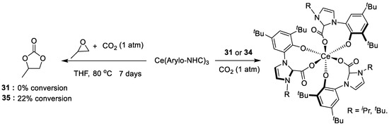 Reactivity of Ce(Arylo-NHC)3 with CO2 and their catalytic performance on the formation of propylene carbonate [59].