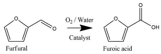 Reaction scheme of the catalytic oxidation of furfural to furoic acid.