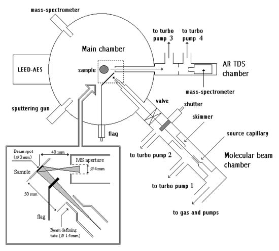 The experiments were carried out in an ultra-high vacuum chamber(VG Scientific, East Grinstead, UK) (Figure 14) pumped by a diffusion pump (Edwards Ltd, Burgess Hill, UK) and an additional titanium sublimation pump (VG) to give a base pressure below 10−10 mbar.