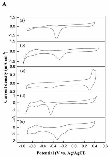 The cathodic peak at region −0.5 to −0.1 V in the repeated CV was due to the reduction of PdO formed during the anodic scan, as shown in Equation (4):
