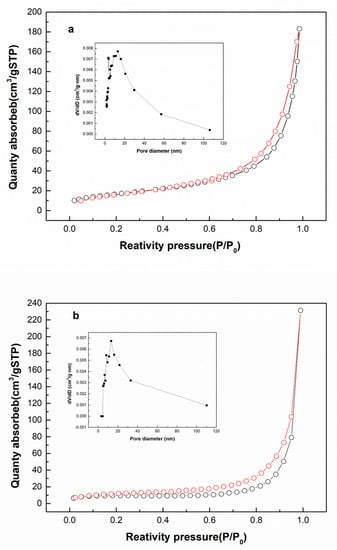 The C, H, N and S contents were obtained by an elemental analyzer (Thermo Fisher Scientific, Boston, MA, USA). Transmission electron microscope (TEM) images of the samples were obtained using a Tecnai G2 F20 S-TWIN transmission electron microscope (FEI, Hillsboro, OR, USA), operating at 150 kV. The nitrogen adsorption isotherms of the samples were detected by a quanta chrome autosorb IQ-MP-MP-AG gas adsorption analyzer (Anton Paar, Shanghai, China). The specific surface area was determined using the Barrett–Emmett–Teller (BET) equation. The pore size and pore volume distribution were measured using the Barrett–Joyner–Halenda (BJH) model. X-ray diffraction (XRD) patterns were recorded on an X’ Pert Pro MPD DY129 X-ray diffractometer (Oxford, UK). Fourier transform infrared (FTIR) spectra were obtained using a Nicolet Is 10 spectrometer (Thermo Fisher Scientific, Boston, MA, USA) with a KBr pellet in a range from 400 to 4000 cm−1.