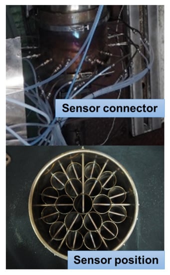 Figure 7 shows the sample catalyst with 19 gas sensors to measure the quantity of ammonia particles in the system, a highly effective way to describe ammonia patterns in the experiments. The number of ammonia particles from each sensor was computed in the gas analyzer, which also showed the values from each sensor. Thus, ammonia uniformity can be described by the color contrast according to the sensor values.