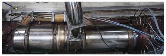 The UWS temperature used in this system was 263 °C, with a urea flow rate of 1319 mL/h; the ambient temperature was 298 K, and the exhaust gas temperature was 686 K [7,16,17]. The UWS injection specifications are listed in Table 3. The commercial catalyst of the Hyundai D6CC with vanadium (V-TiO2) SCR, a cell density of 300 cpsi and cordierite substrate material was used in this study.