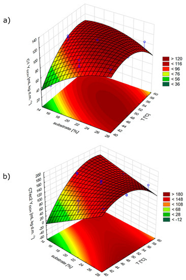 The empirical relationship between predicted ethanol yield and the variables substrate concentration and temperature was expressed as a polynomial equation:
