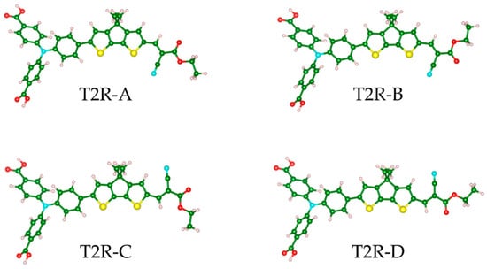Minimum energy structures of four conformations for the T2R dye obtained by DFT calculations.