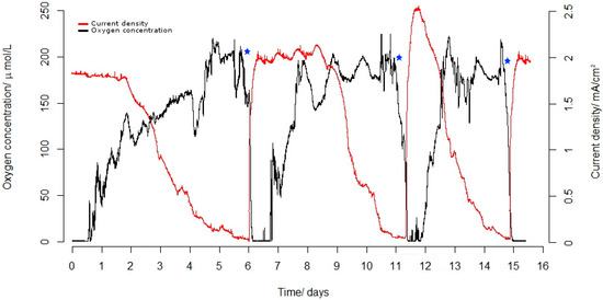 - Revsbech, N.P. An oxygen microsensor with a guard cathode. Limnol. Oceanogr. 1989, 34, 474–478. [Google Scholar] [CrossRef]