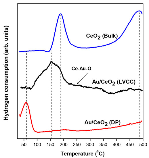 2.1.5. Temperature Programmed Reduction (H2-TPR) of Fresh Au/CeO2