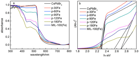 3.1.3. Synthesis of the CsPbBr3/MIL-100(Fe) Composites