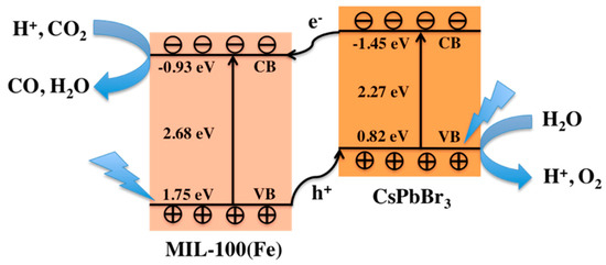 - Wan, S.P.; Ou, M.; Zhong, Q.; Wang, X.M. Perovskite-type CsPbBr3 quantum dots/UiO-66(NH2) nanojunction as efficient visible-light-driven photocatalyst for CO2 reduction. Chem. Eng. J. 2019, 358, 1287–1295. [Google Scholar] [CrossRef]