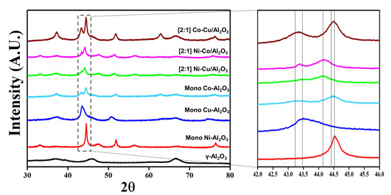 | [2:1] Ni-Co/Al2O3 | 21.4 | 0.0 | 11.3 | 32.7 | 1.89 | 159.4 | 0.45 | 12.0 | 36.3 |