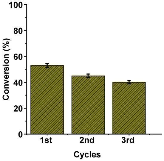 Recycling experiments of ND@βNH-TPPpCF3-Cu(II) in the oxidation of cyclohexene. Data represent the mean ± standard error (n = 3).