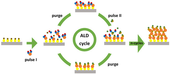 Schematic representation of the atomic layer deposition (ALD) process adapted from O’Neill et al. (2015) [51].