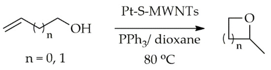 Cyclization of unsaturated γ- or δ-unsaturated alcohols catalyzed by Pt-S-MWNTs [73].
