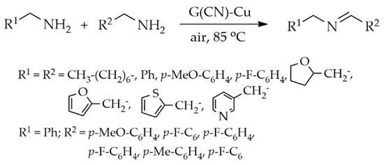 Oxidative dehydrogenation of amines to imines catalyzed by Cu(I)/Cu(II) G-CN [76].