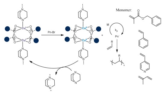 - Lee, H.-C.; Antonietti, M.; Schmidt, B.V.K.J. A Cu(II) metal–organic framework as a recyclable catalyst for ARGET ATRP. Polym. Chem. 2016, 7, 7199–7203. [Google Scholar] [CrossRef]