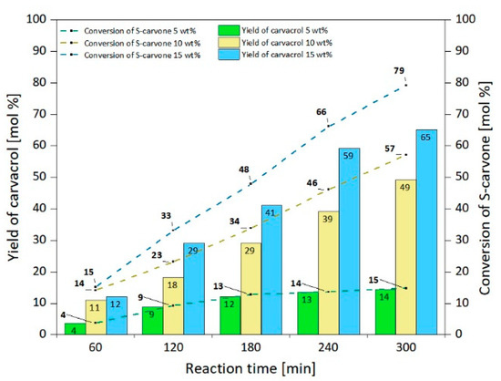- Retajczyk, M.; Wróblewska, A. Isomerization and Dehydroaromatization of R(+)-Limonene Over the Ti-MCM-41 Catalyst: Effect of Temperature, Reaction Time and Catalyst Content on Product Yield. Catalysts 2019, 9, 508. [Google Scholar] [CrossRef]