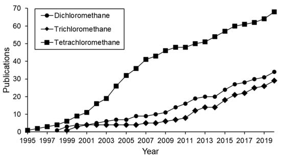 Evolution of publications on HDC of different chloromethanes in the last 25 years (cumulative incidence).