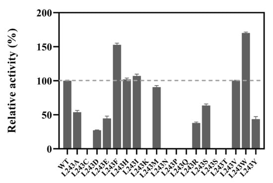 2.3. Site-Saturation Mutagenesis at Residue L243
