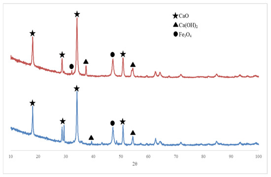 Based on the X-ray diffractogram shown in Figure 1, it can be seen that all the prepared catalysts (Fe3O4/CaO) show similar peaks that indicate their being of the same phase of crystal. However, considering that the peak intensity of obtained Fe3O4/CaO increased slightly while the dehydration time increased, it could be assumed dehydration has a time-driven positive impact on the active site of the catalyst surface, as has been reported previously by Mutreja, et al. [33].