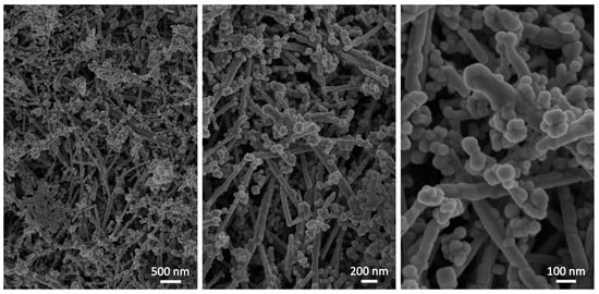 The morphology of the catalyst was investigated via field emission scanning electron microscopy (FESEM), using a Zeiss Merlin equipped with a Gemini-II column. An Oxford x-act X-ray detector allowed to estimate the sample composition via energy-dispersive X-ray spectroscopy (EDX).