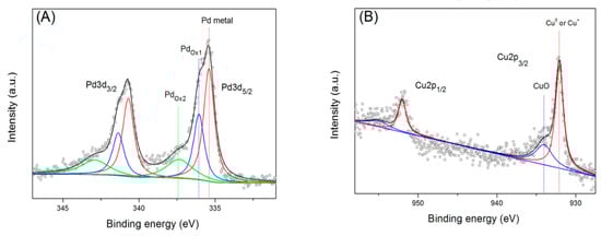 Core–shell XPS spectra of (A) Pd 3d and (B) Cu 2p.