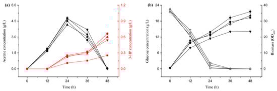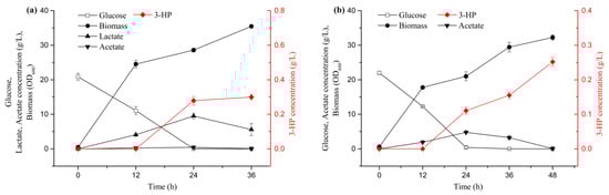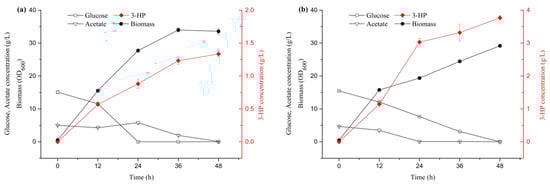 2.3. 3-HP Production from a Mixture of Glucose and Acetate