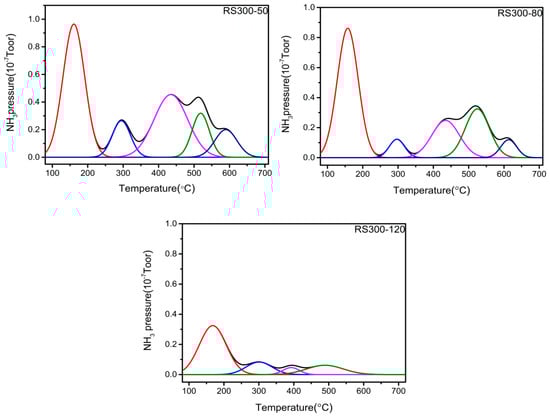 Temperature-programmed desorption (NH3-TPD) patterns of RS300-50, RS300-80, and RS300-120.