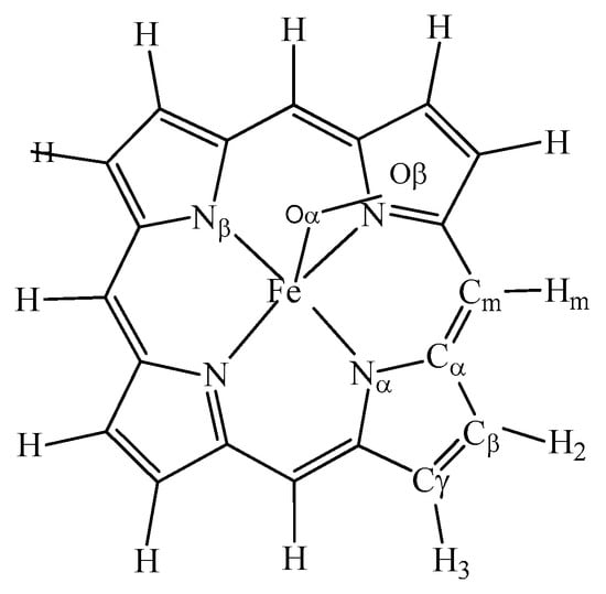 - Liao, M.-S.; Scheiner, S. Electronic structure and bonding in unligated and ligated Fe II porphyrins. J. Chem. Phys. 2002, 116, 3635–3645. [Google Scholar] [CrossRef]