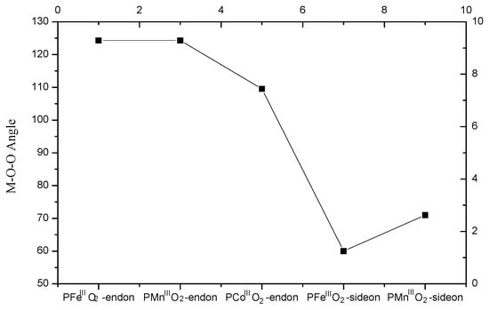 The M-O-O angles of side-on and end-on PMII-O2 intermediates.