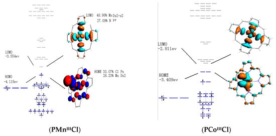 Frontier molecular orbitals of PMII and PMIIICl (M=Fe, Mn, and Co).