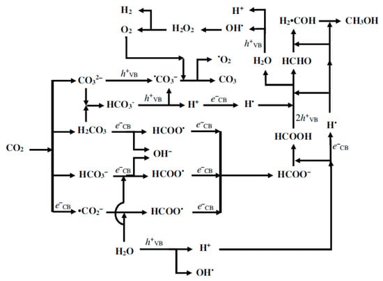 Basic illustration describing the reaction mechanism of CO2 photoreduction. Reproduced from work in [47]. Copyright 2016 Elsevier B.V.