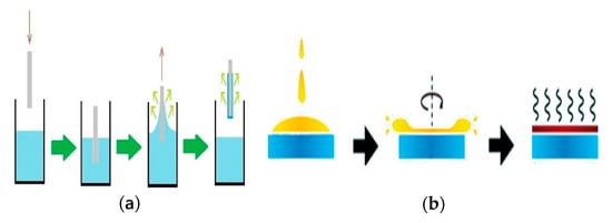 - Deepa, M.; Saxena, T.K.; Singh, D.P.; Sood, K.N.; Agnihotry, S.A. Spin coated versus dip coated electrochromic tungsten oxide films: Structure, morphology, optical and electrochemical properties. Electrochim. Acta 2006, 51, 1974–1989. [Google Scholar] [CrossRef]