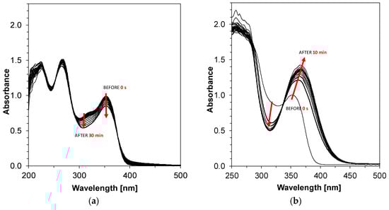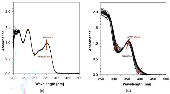 The photolysis of pyridine derivatives in the presence of diphenyliodonium salt (2.7·10−2 mol/dm3) or ethyl 4-(dimethylamino)benzoate (4.3∙10−3 mol/dm3) was determined with the same parameters over 10 min. The source of light was powered by a DC2200-regulated power supply (from Thorlabs Inc., Newton, NJ, USA).