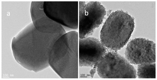 TEM image characterization of (a) hierarchical ZSM-5 zeolite and (b) Mn3O4/hierarchical ZSM-5 zeolite.