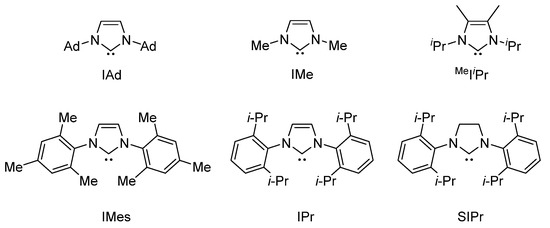 Frequently utilized N-heterocyclic carbenes and their acronyms. Ad = adamantanyl.