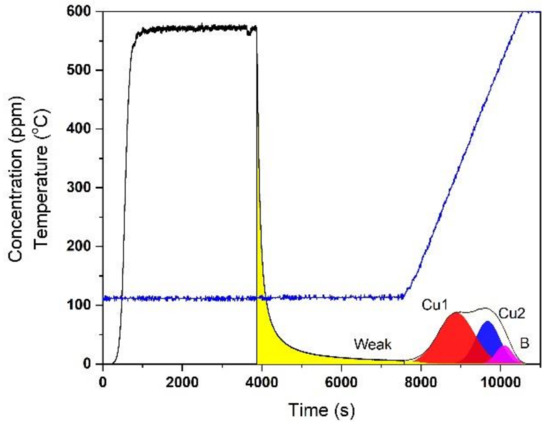Deconvolution of NH3 desorption data of the degreened Cu-CHA.