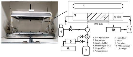 - Seo, D.; Yun, T.S. NOx removal rate of photocatalytic cementitious materials with TiO2 in wet condition. Build. Environ. 2017, 112, 233–240. [Google Scholar] [CrossRef]