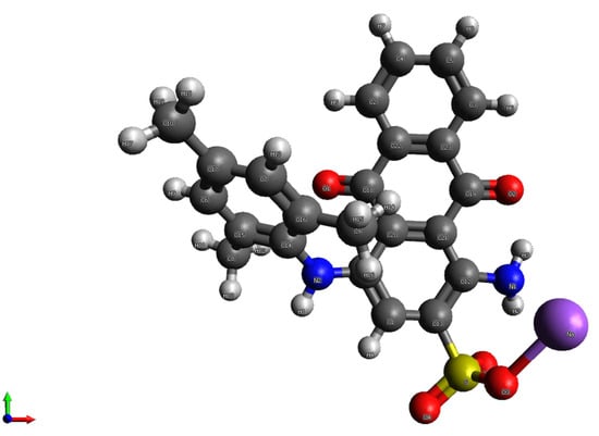 The initial coordinates of the AB129 structure were obtained with the Avogadro program []. The structure of the AB129 was further optimized using the Orca program package [], and the results were validated with Gaussian 16 software [], both in the gaseous and liquid phase at the B3LYP/6-31G** level of study, as suggested in a recent work on the Acid blue 113 oxidation []. Time-dependent density functional theory TD-DFT was used to predict the excited state properties of AB129. The outputs were later visualized with the Avogadro program, whereas the electron densities and Hirshfeld charges were visualized and computed by Multiwfn software [,].