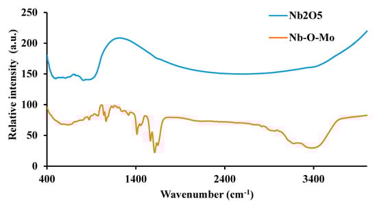 FTIR of the Nb2O5 and Nb–O–Mo samples.