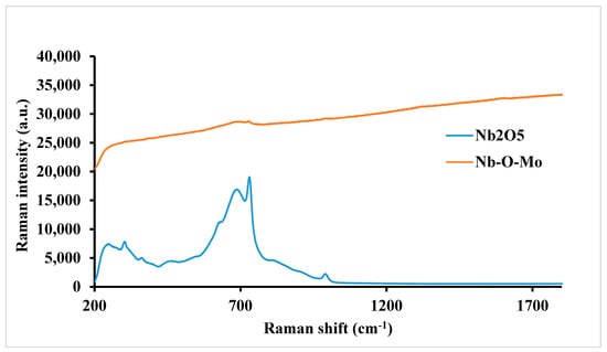 Raman spectra of the Nb2O5 and Nb–O–Mo samples.