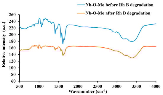 FTIR spectra of Nb–O–Mo before decolorization and Nb–O–Mo after decolorization.
