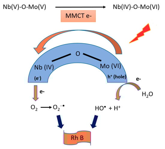 Schematic illustration of Rh B decolorization by Nb–O–Mo MMCT catalyst.