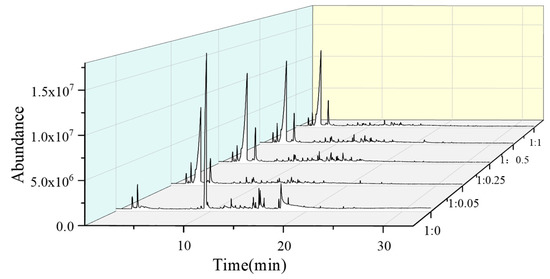 The Py-GC/MS chromatograms of the pyrolysis of fructose catalyzed by the different amounts of KAc were plotted as a three-dimensional display (3-D) (Figure 6).