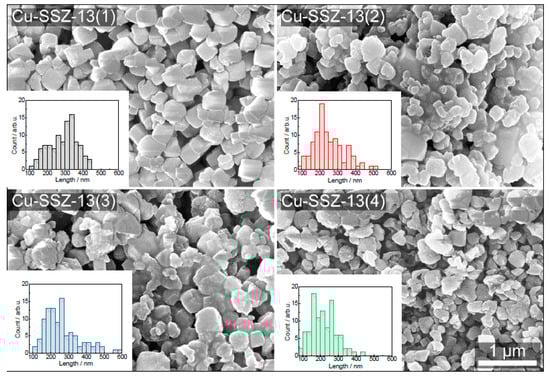 SEM images of Cu-exchanged SSZ-13. The crystallite size distribution was constructed by counting 100 crystallites randomly from SEM images.
