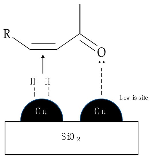 Lewis site role in the double bond hydrogenation of an α,β-unsaturated carbonyl compound.